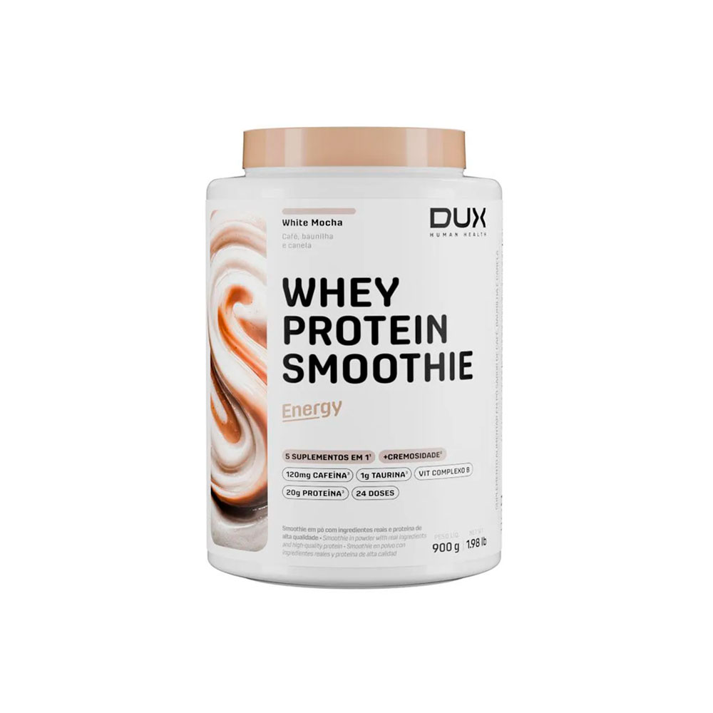Whey Protein Smoothie Energy DUX 900g – proteína cremosa com energia inteligente. Seu dia e seu treino em outro nível, começando em Curitiba!
